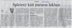Alespoň částečně se mohu podepsat pod první část výroku Karla Raise, že „by … bylo necitlivé vůči inkludovaným žáčkům a jejich rodičům teď říci, že inkluze nevyšla podle původních slibů, že ji rušíme a děláme krok zpět.“ („Splašený kůň jménem Inkluze“, LN 7. 3.). Tedy pod to, že není namístě inkluzi rušit – a až na to strašné slovo „inkludovaným“. Nelíbilo se ani počítači, opravil ho na „okludované“.