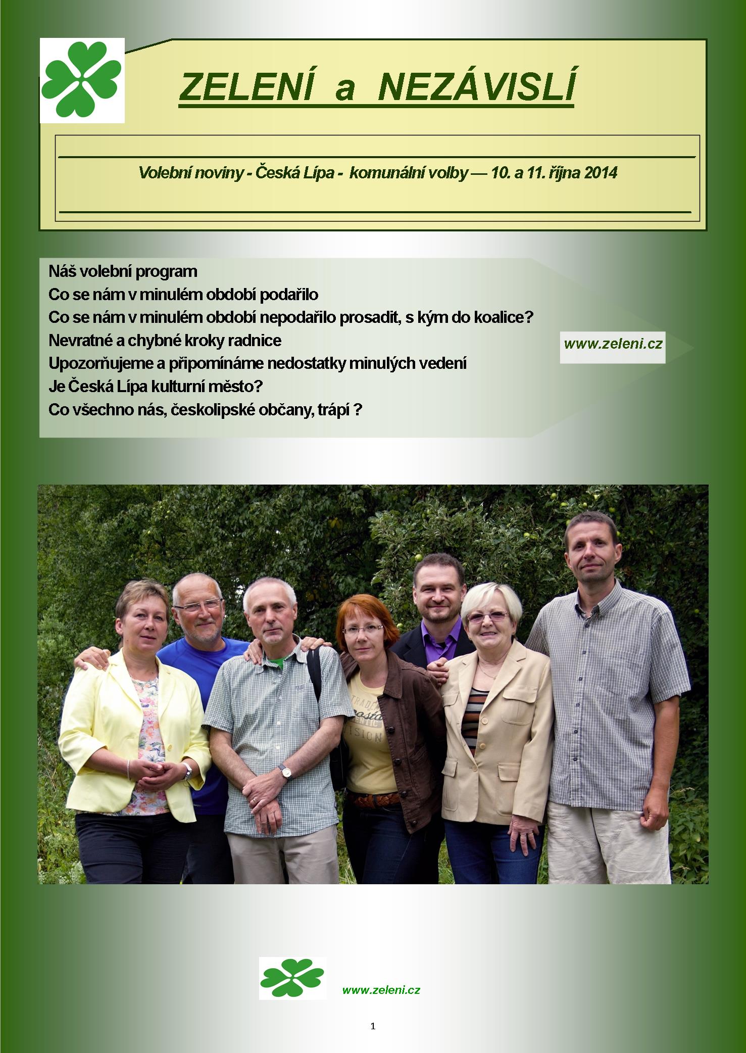 Volební noviny – ZELENÍ A NEZÁVISLÍ